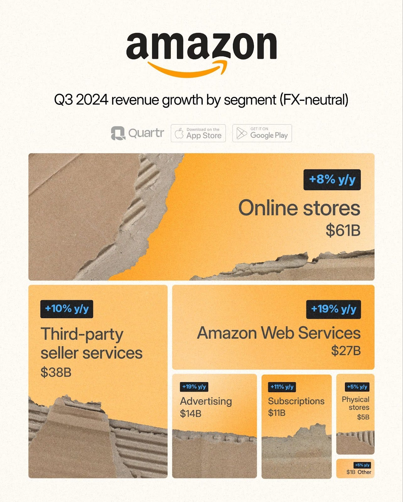 2/ In its retail sector, Amazon has seen significant profitability improvements, especially in North America, thanks to efficiency gains from its optimized logistics network built during the pandemic. The focus on “Everyday Essentials” - low-margin, high-turnover items like toiletries - has widened Amazon’s addressable market, driving consumer engagement through fast delivery options. Amazon’s expanding share in this low-margin segment demonstrates the importance of speed and efficiency in capturing customer loyalty, ultimately translating to higher overall order volumes and profitability.