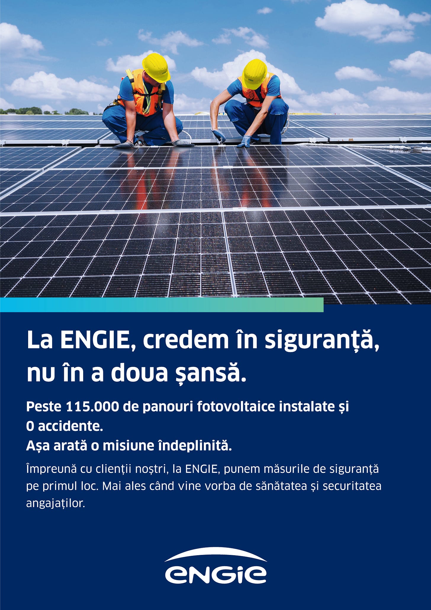 ENGIE Romania a instalat până acum un număr de peste 115.000 de panouri fotovoltaice, cu zero accidente de muncă, fiind un partener de business responsabil, care pune în centrul tuturor proiectelor pe care le derulează preocuparea pentru securitatea și sănătatea în muncă.