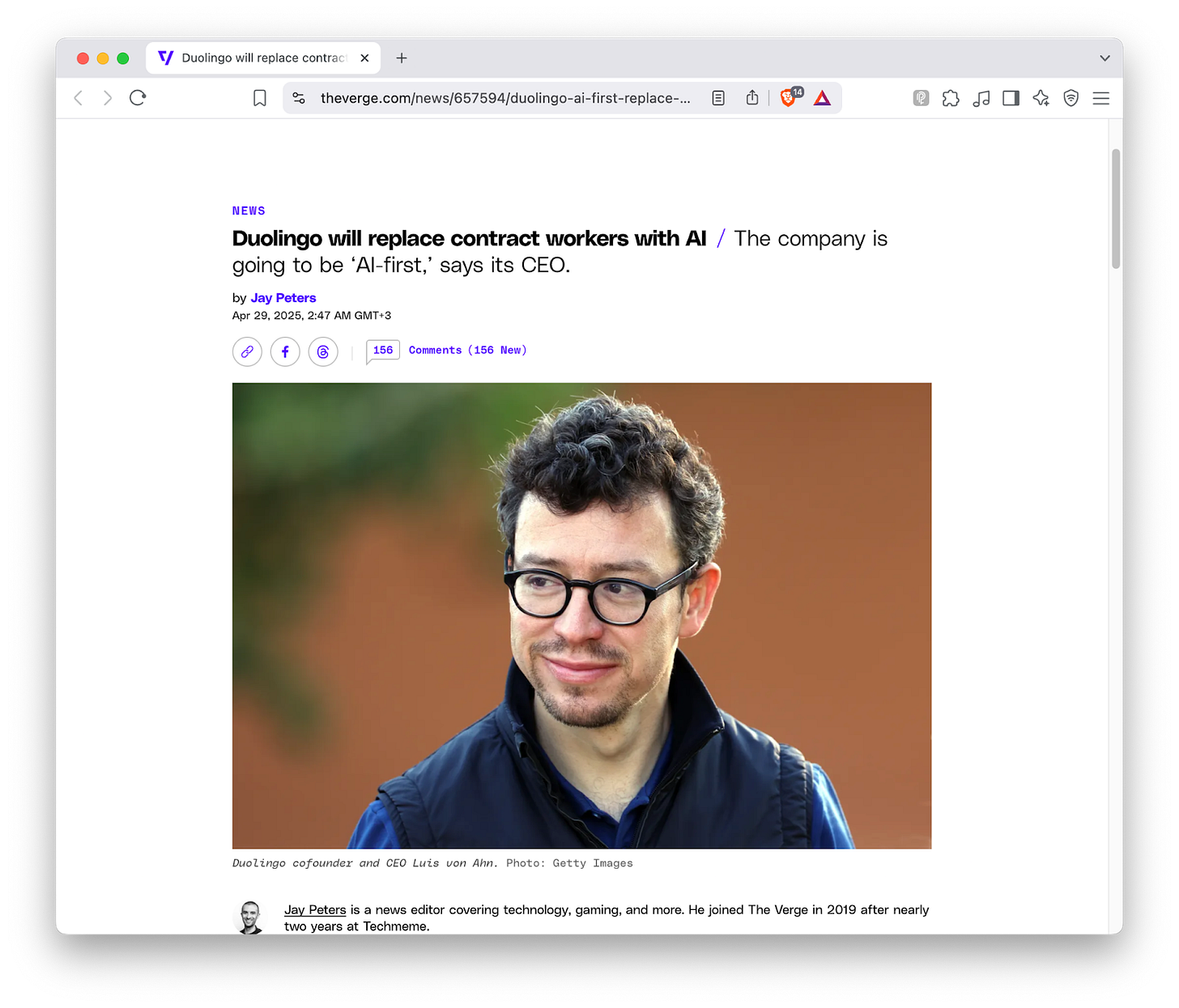 1/ Duolingoâs latest announcement is one of those corporate memos that reads like a cheerful funeral. CEO Luis von Ahn says the company is going âAI-first,â which, translated into plain English, means: the bots are staying, the contractors are not. The memo stresses that this isnât about replacing people, but rather about âremoving bottlenecksâ and âunlocking creativityâ, which is a nice way of saying the repetitive, human jobs are now officially too expensive to justify. The AI shift is framed like a moral duty: we owe it to our users to automate faster. Somewhere, the content moderators and translators quietly pack up.
