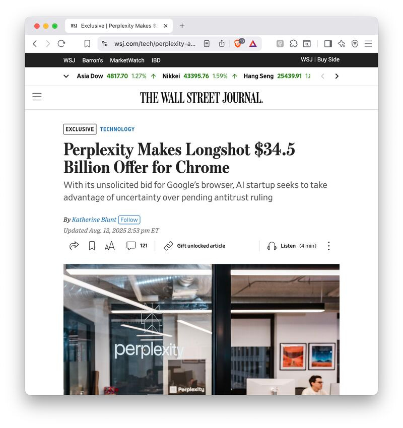 Chrome’s value is in the default status and the massive funnel into Google Search, Ads, and data collection. Strip that away, and you’re basically left with a pretty UI shell and a logo. So, unless Perplexity thinks it’s buying 3.5 billion users (spoiler: it’s not), this is either a very expensive PR stunt or a bet that they can somehow turn a free, open-source commodity into a $35 billion profit center. Which is… bold. LINK
