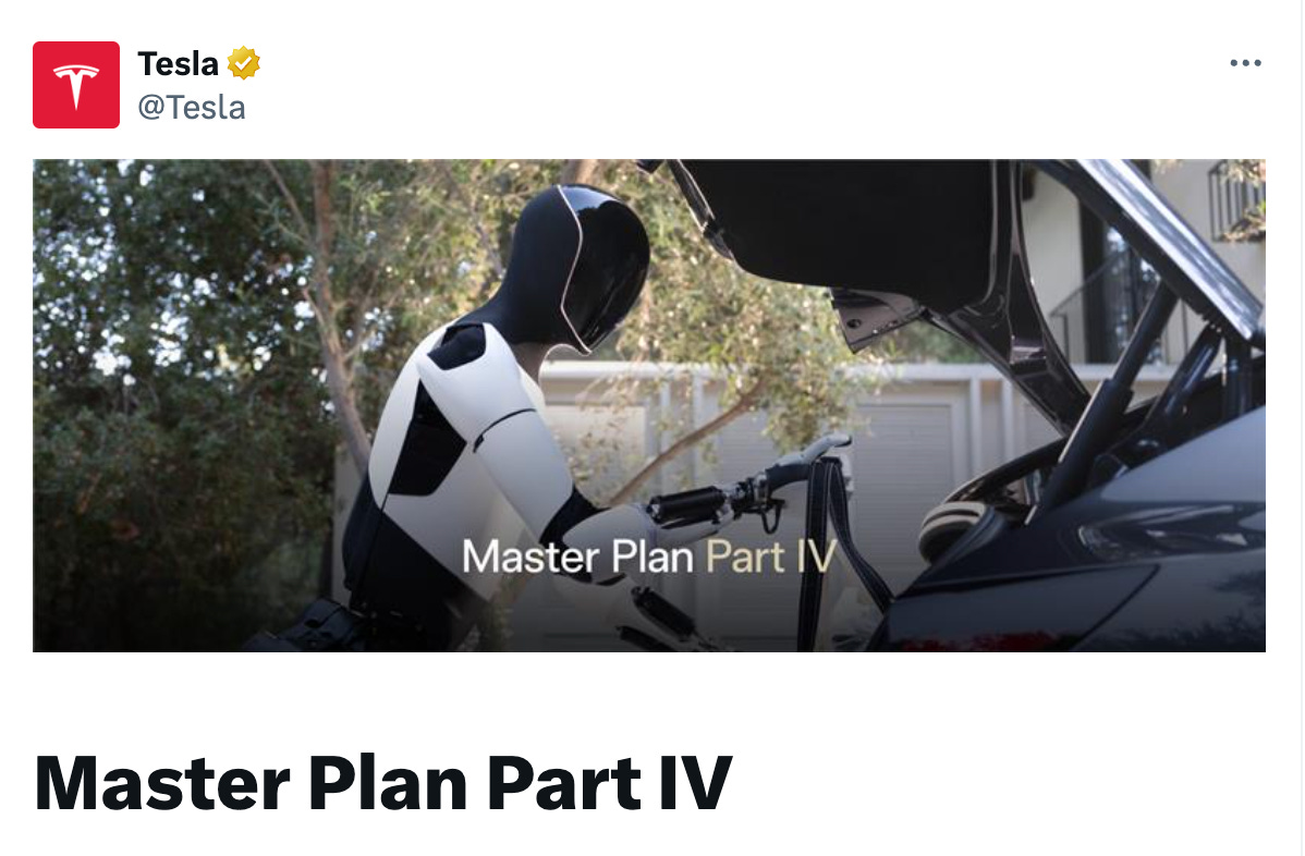So where does that leave us? Master Plan IV is less a roadmap than a vibes deck: a way to keep Tesla’s stock narrative buoyant while execution catches up. The company is still mostly an EV manufacturer with thin margins and rising competition. But as long as investors believe in the optionality (ie. the possibility that Tesla becomes not just a car company but an AI-and-robotics platform), then “sustainable abundance” works as a stock story, if not an actual strategy. In other words, it’s less about eliminating scarcity in the world, and more about sustaining abundance in Tesla’s valuation. LINK