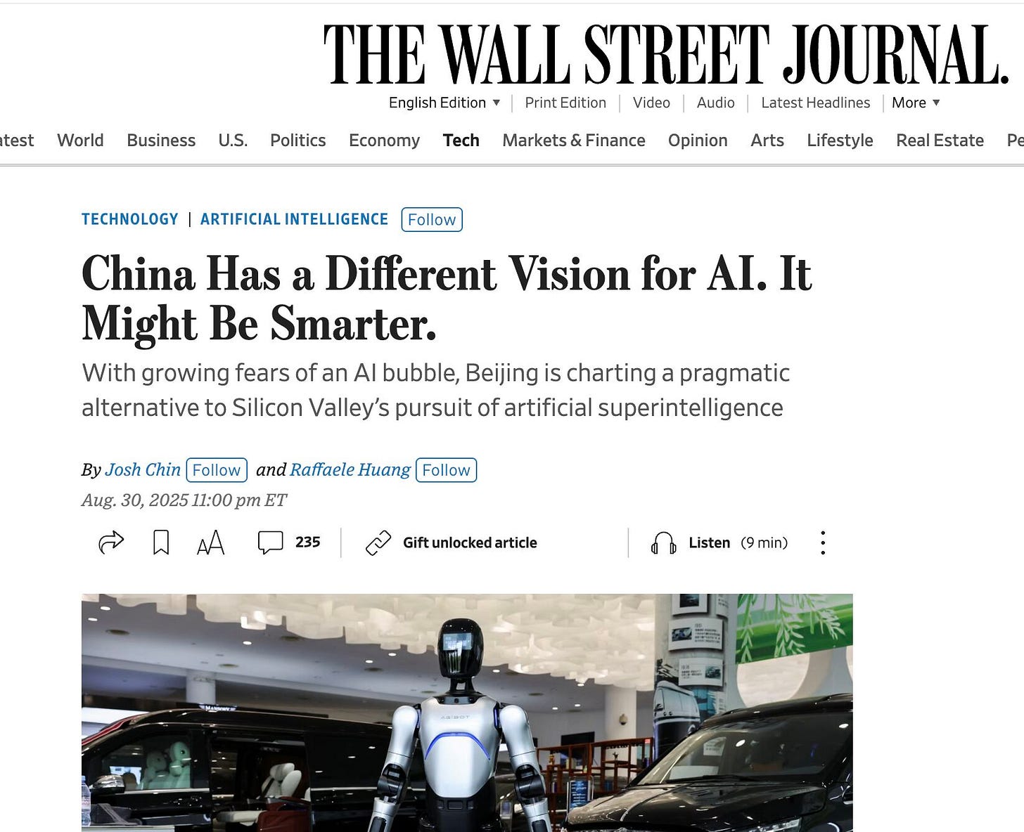 The US is burning billions of dollars and enough electricity to light up Vegas just to maybe, someday, build an AI that can outthink humans. China looked at that and said: "Cool, good luck with your artificial super-God! Meanwhile we’ll use AI to run our factories, grade exams, predict the weather, and maybe fix supply chains". It’s the same playbook they ran with batteries and solar panels: let the Americans invent the shiny prototype, then industrialize, optimize, and scale it until it’s boring, cheap, and everywhere.