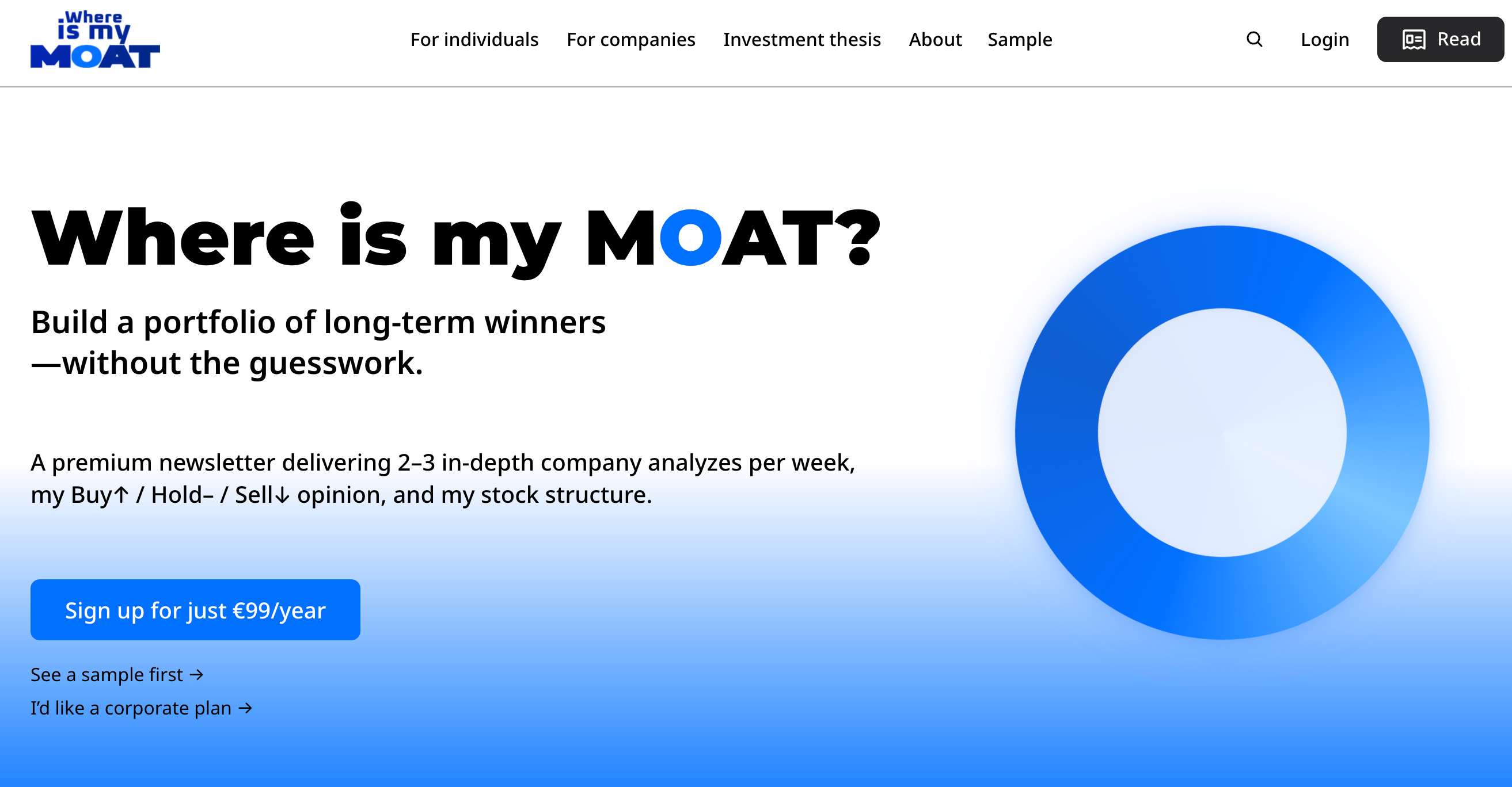 Today Iâm launching whereismymoat.com - my public investing lab where I map a companyâs journey, score its moat, and write what I would do - buy/hold/sell - in the open. Also, I will share my full portfolio structure (which is at +67% Year-to-Date)