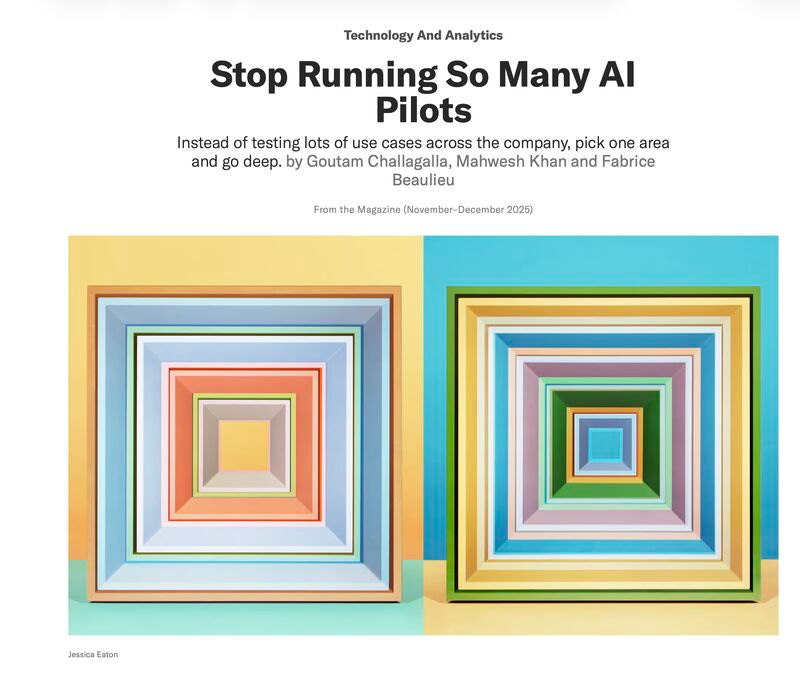 You get an AI pilot for churn, an AI pilot for pricing, an AI pilot for HR, each with its own steering committee, consultant(s), and carefully non-committal KPIs, and then they all end up stacked in some “innovation portfolio” deck like modern art in a storage unit.