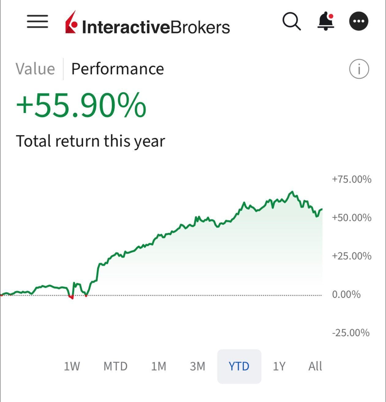 Translation: Read the reports, understand the moats, listen to the earnings calls, say “No!” to doomed markets & companies, etc. Eleven months later, this Interactive Brokers screenshot says +55.9% YTD.