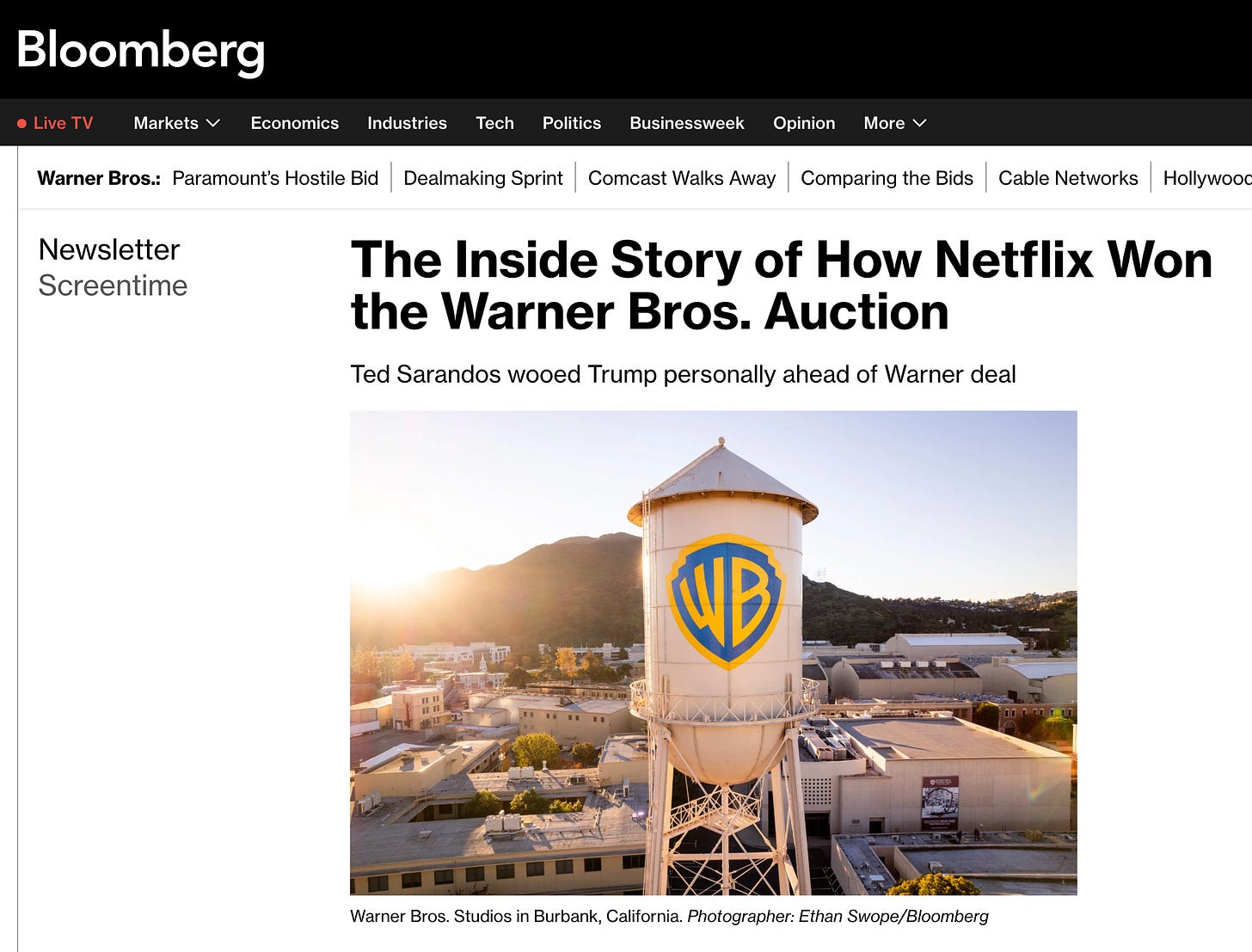 Netflix’s pitch was basically “we’ll extract more value from your assets than anyone else”. The traditional studio system that once dismissed Netflix as a disruptor is now being absorbed by it. Content is valuable, but being the operating system of attention is exponentially more powerful. (Bloomberg)