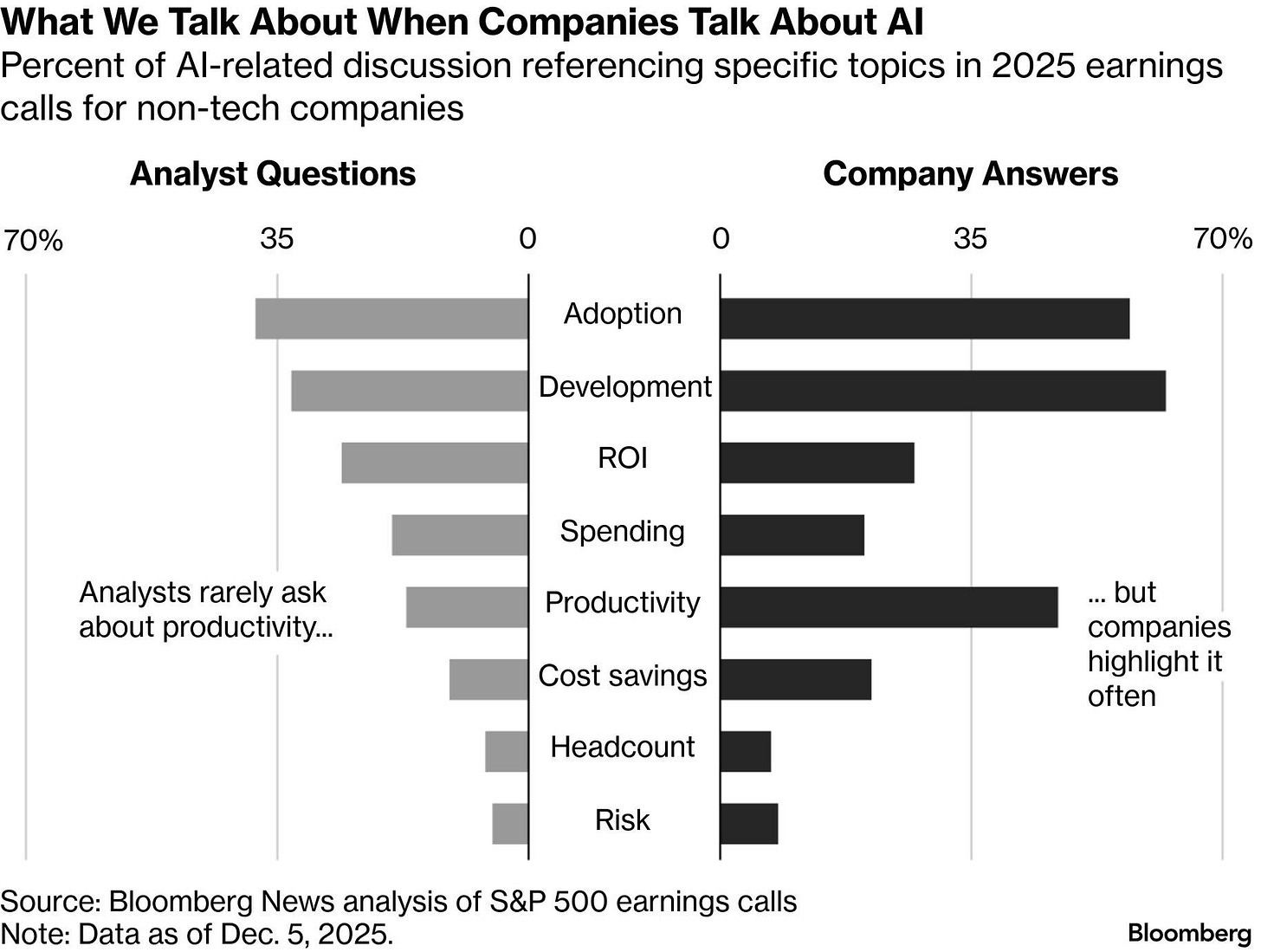..even though US businesses (outside the āAI buildersā) spent an estimated $86B on AI in 2025 and are expected to spend $131B next year, which feels like the sort of thing you might ask about if your job is "ask questions" (but fewer than half of S&P 500 companies got any generative-AI questions in 2025, versus >80% of tech in the most recent quarter).