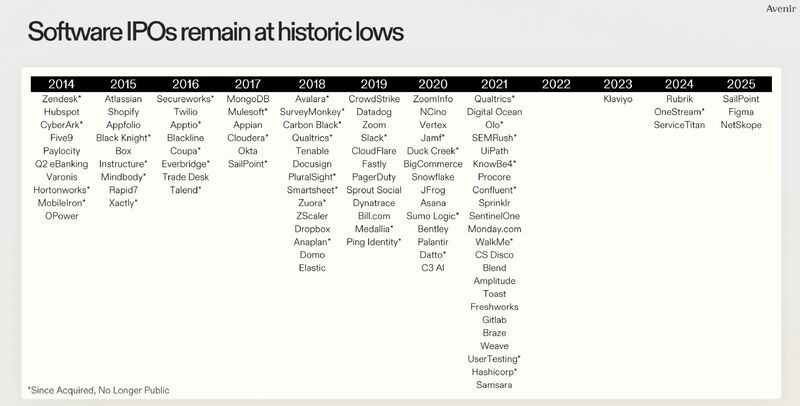 Software didnāt stop being important; it's just that investors just decided theyād rather own it through megacaps, private rounds, or M&A⦠than through a newly public company explaining quarter-by-quarter. LINK