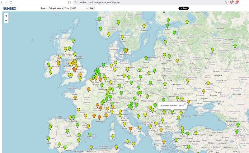 Big international cities are crime-content factories. London has more tourists, more pickpockets, more headlines, more viral videos, more āthis city is finishedā discourse. Sweden has a whole export industry of āNordic dystopiaā stories. Meanwhile, Bucharestās biggest comparative advantage here might be "come here! It's super safe and we don't have bad neighborhoods" (to be fair, as of 2023, the Swedish Police Authority identified 59 geographical areas, often referred to in media as "no-go zones")